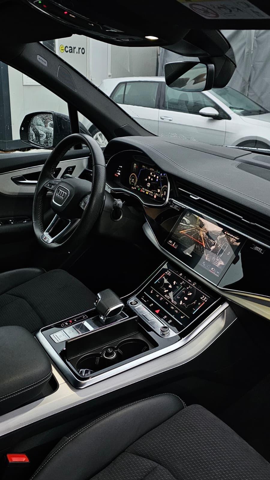 Audi Q7 55 Tfsi e Quattro S-Line Putere totala: 381cp (340cp motor termic + 136cp motor electric) Capacitate baterie: 17.9kWh Autonomie electrica WLTP: 48km Tractiune integrala Quattro Cutie de viteza cu 8+1 trepte Istoric complet Audi Fara daune sau revopsiri TVA deductibil Dotari: - Pachet S Line interior si exterior - Camere 360 (fata, spate, laterale) - Suspensie pe aer cu reglarea garzii la sol - Pilot automat adaptiv cu toate functiile de siguranta - Faruri Matrix - Head-up Display - Scaune sport electrice si cu memorie - Scaune incalzite si cu suport lombar electric - Keyless Entry/Go - Carplay - Carlig - Jante 20” - Geamuri laterale duble - Oglinzi rabatabile electric etc etc Pentru mai multe informatii va rugam sa ne contactati