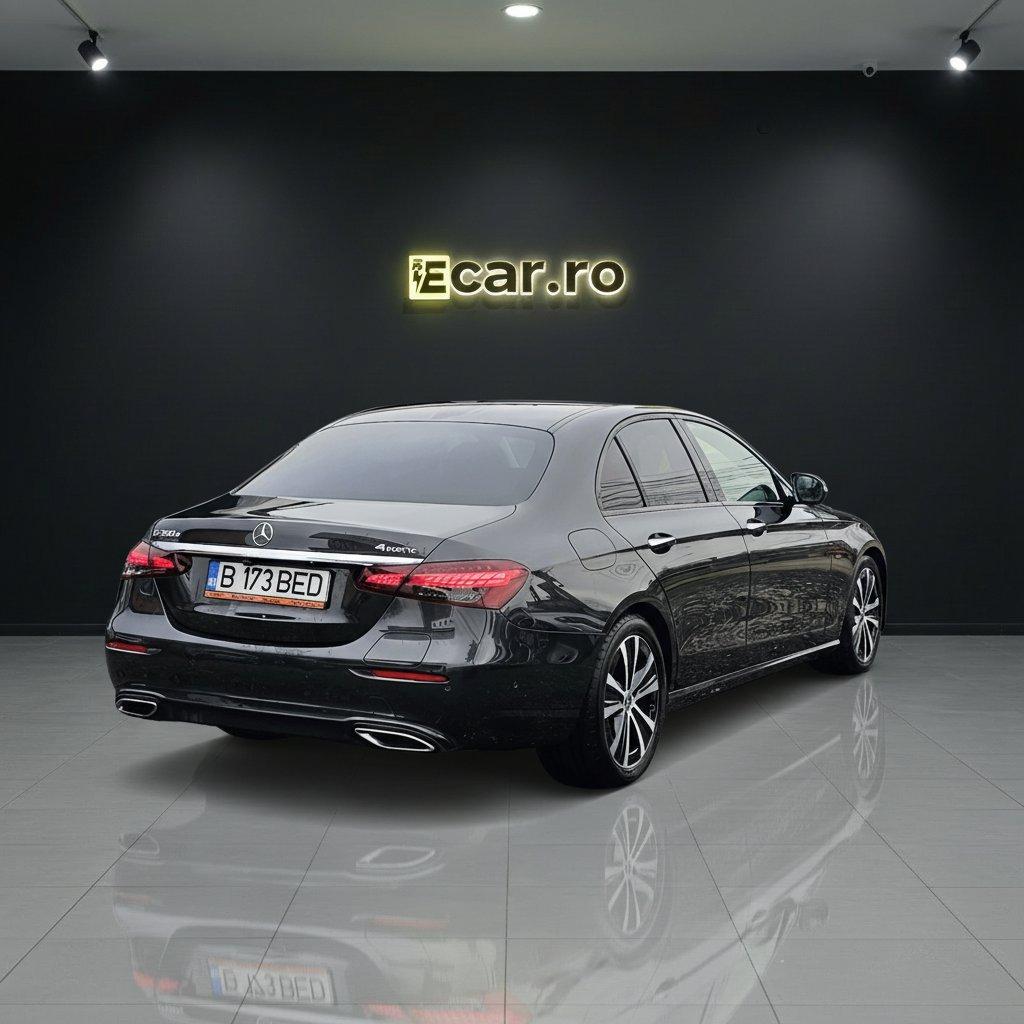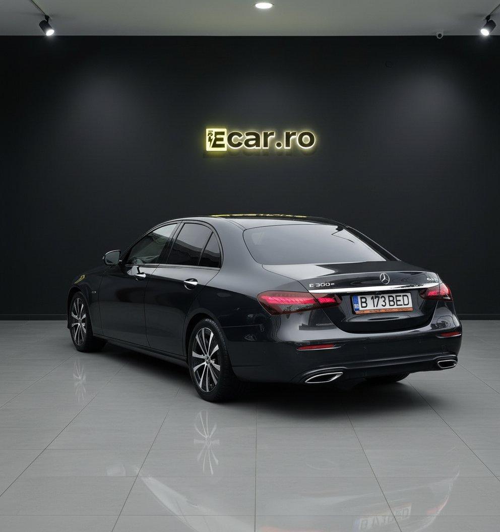 Pentru mai multe poze, istoric si detalii, accesati: www.ecar.ro Autoturism vandut in consignatie Istoric complet in reteaua Mercedes Fara daune sau revopsiri. Fara probleme tehnice Masina are Casco si garantie extinsa (Defend Car Protect Deluxe - acopera defectiuni tehnice, inclusiv componentele sistemului hibrid) Anvelope de iarna incluse in pret / 2 incarcatoare Mercedes-Benz E300e 4matic Facelift Putere totala combinata: 320cp (211cp motor termic benzina + 122cp motor electric) Tractiune integrala 4matic Suspensie pneumatica Airmatic cu reglarea garzii la sol Autonomie electrica declarata WLTP: 55km Capacitate baterie: 13.5 kWh Cutie de viteze: 9G-Tronic Posibilitate preluare leasing / finantare / credit Masina nu trebuie incarcata mereu la priza/statie. Ea se incarca si in mers si va functiona in regim hibrid mereu. Cei 320cp sunt disponibili si daca nu o incarcati. Masina mentine un minim de capacitate a bateriei pentru a oferi perfomantele mentionate. Daca o incarcati la priza/statie, beneficiati de o autonomie full electric mult mai mare. Dotari: • Pachet Airmatic - Suspensie pneumatica adaptiva - Sistem de amortizare cu controlul automat al nivelului in functie de sarcina - Sistem de reglare automat al garzii la sol in functie de viteza de deplasare sau de conditiile drumului - Sistem de reglare al garzii la sol in functie de modul de conducere prin Agility Select • Pachet Business - Scaune fata electrice si cu memorie - Scaune fata cu masaj, dinamice in viraje si cu suport lombar si lateral reglabil electric - Volan regalbil electric - Easy-Entry (memorare pozitie scaun, volan, oglinzi. La coborarea si la urcarea in masina scaunul si volan revin la pozitia memorata sau la o pozitie pentru a facilita intrarea/iesirea din autorusim) • Sistem audio Burmester • Head-up display • Lumini ambientale • Bord digital • Smartphone integration package (Apple Carplay si Android Auto) • Mercedes-Benz Connect (aplicatie mobila Mercedes de unde se pot controla diverse functii ale masinii) • Faruri Led Multibeam - Automatic high beam control plus IHC+ (noaptea farurile ,,Decupeaza” traficul din fata, pastrand faza lunga) - Lumini cornering viraj - Lumini de zi Led • Pachet Distronic Plus - Distronic Plus + Active Lane Assist (conducere autonoma in functie de drum si trafic, inclusiv mentine activ banda) - Functie de franare in caz de accident inclusiv cu monitorizarea traficului din spate si franare pentru pietoni/biciclisti - Evasive Steering Assist (manevre automate pentru evitarea unui accident) - Blind Spot Assist (Asistent unghi mort) - PreSafe (in caz de impact iminent pregateste masina - pretensioneaza centurile, inchide trapa si geamurile - Traffic Jam Assist (conducere autonoma in trafic) • Pachet Keyless comfort - Keyless Entry (Acces autovehicul cu cheia in buzunar) - Keyless Go (Pornire autovehicul buton Star/Stop) - Haion actionat electric - Senzor deschidere haion cu piciorul • Pachet Parking - Camera marsarier - Active Parking Assist (se parcheaza singura) - Senzori parcare fata-spate • Scaune fata incalzite • Sistem citire semne de circulatie cu afisaj pe head-up display si in bord • MBUX Navigation Plus • Pachet oglinzi - Oglinzi rabatabile electric - Oglinzi heliomate si electrice • Incarcator telefon wireless • Geamuri spate Privacy • Trimuri exterioare negre • Clima automata 2 zone • Senzor presiune anvelope • Volan imbracat in piele cu comenzi si padele • Sistem Ecall - apel de urgenta • Airbag genunchi